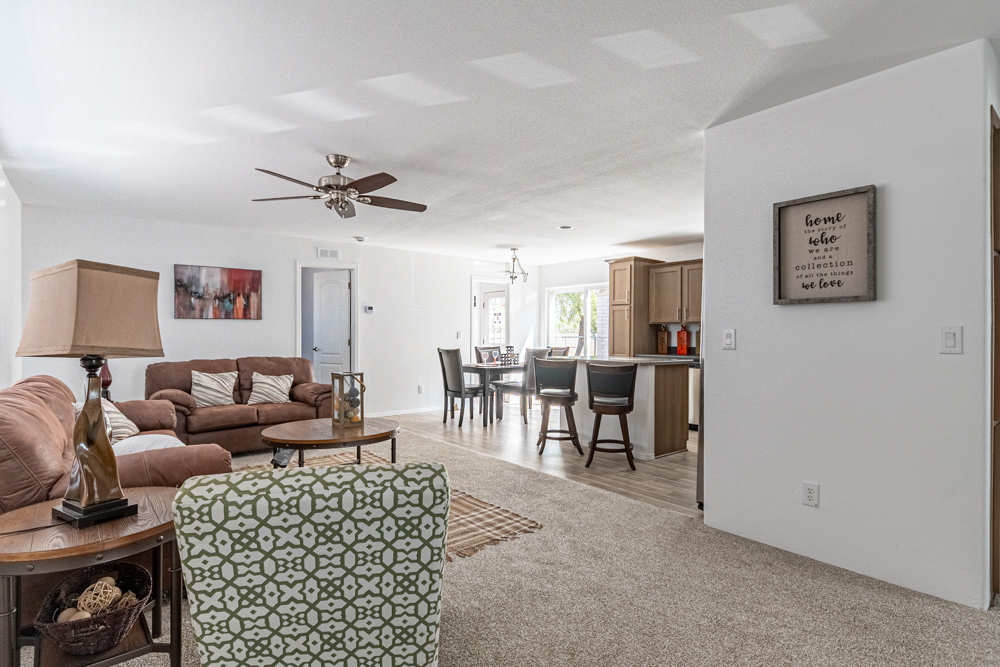 The Daisy model has 3 Beds and 2 Baths. This 1214 square foot Double Wide home is available for delivery in Arizona, California, Nevada, New Mexico, Colorado, Utah.