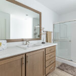 - Fiberglass Stall Shower w/ Glass Enclosure in Primary Bathroom