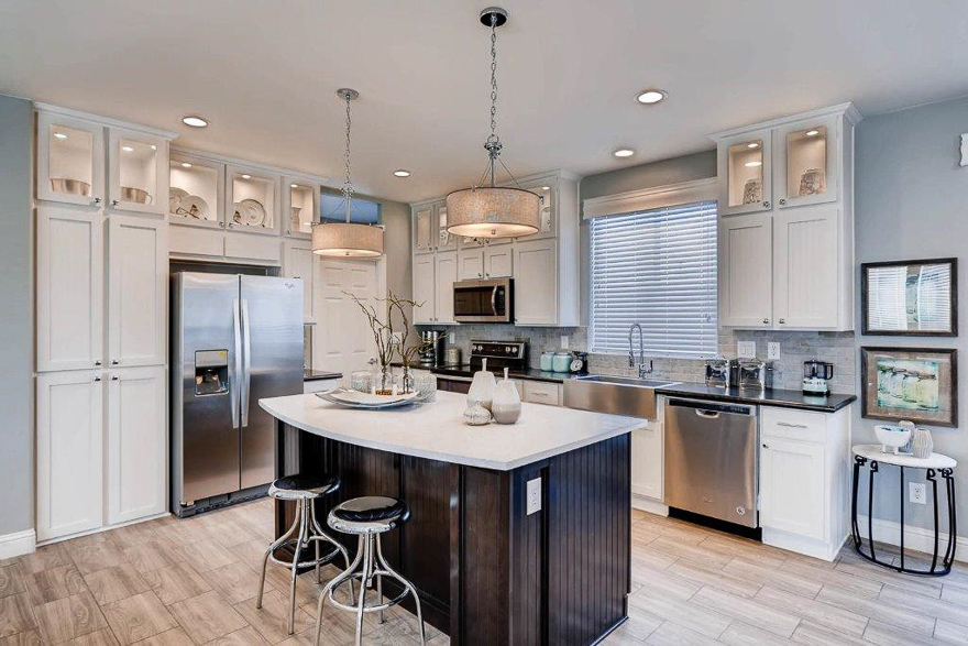 - Premium laminate countertops with crescent front edge and ceramic tile