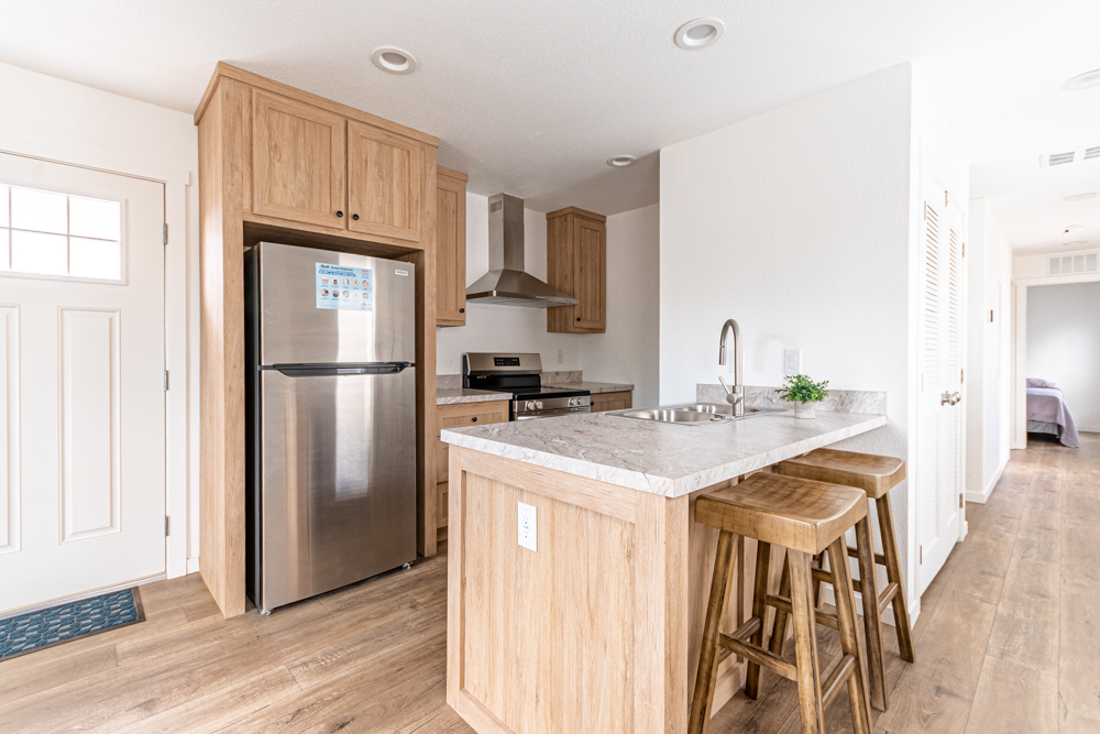 The Mendon model has 2 Beds and 1 Bath. This 632 square foot Single Wide home is available for delivery in Arizona, California, Nevada, New Mexico, Colorado, Utah.