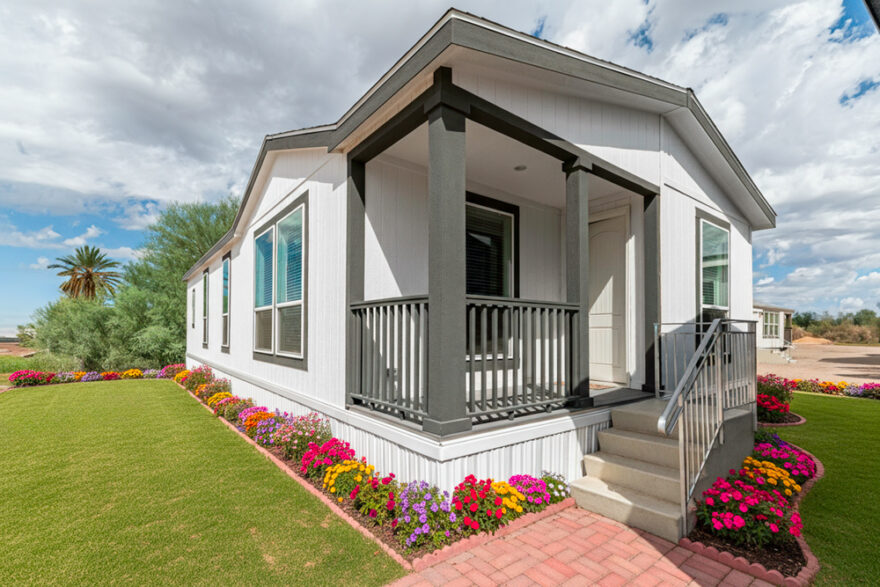 The Pomerene model has 3 Beds and 2 Baths. This 1230 square foot Double Wide home is available for delivery in Arizona, California, Nevada, New Mexico, Colorado, Utah.