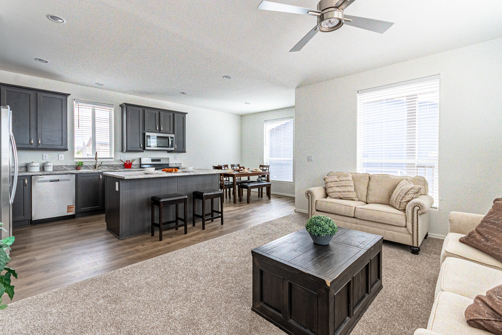 The Pomerene model has 3 Beds and 2 Baths. This 1230 square foot Double Wide home is available for delivery in Arizona, California, Nevada, New Mexico, Colorado, Utah.